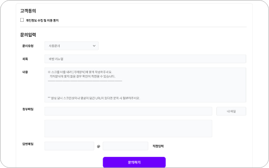02. 먼저 개인정보 수집 및 이용 동의에 체크한 후 문의 내용을 입력합니다.