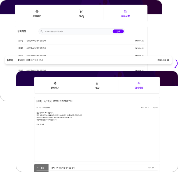 로그키 매뉴얼 메인 > 고객센터 사용방법