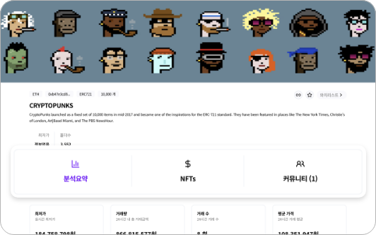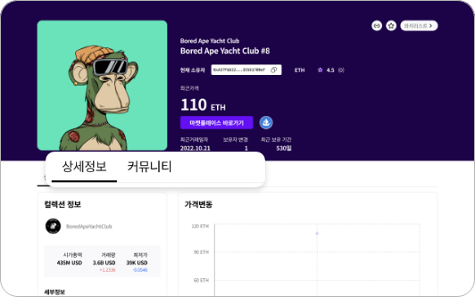 NFT작품에 대한 가격 분석, 커뮤니티를 통한 다양한 여론을 확인할 수 있으며,