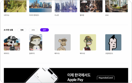 AI 추천 상품 NFT탭을 통해서도 다양한 상품을 확인할 수 있습니다.