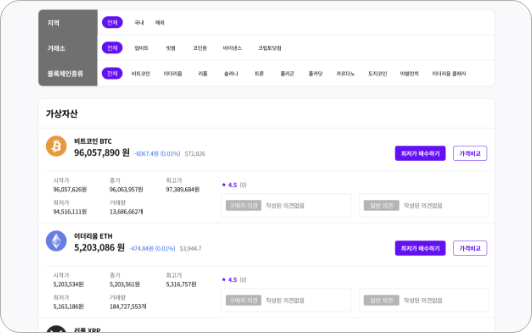 블록체인 종류 등 필터를 적용하여 원하는 결과를 빠르게 얻을 수 있습니다.