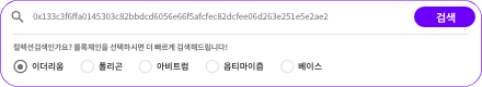 검색창에 해시 또는 자연어(이더리움 만 지원)를 입력하거나 붙여넣기를 통해